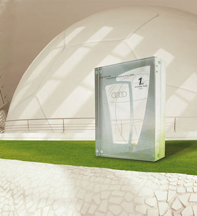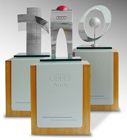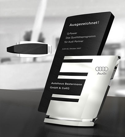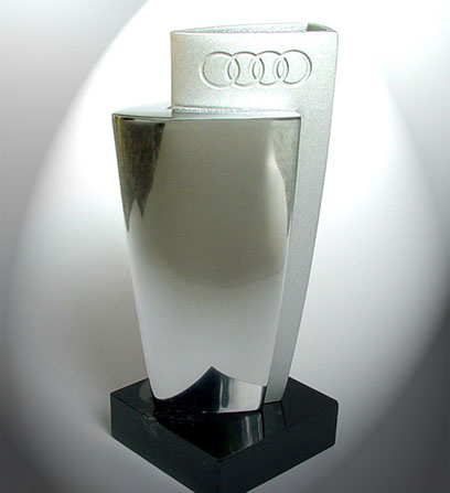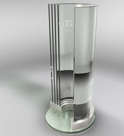 Pokal aus Aluminium und Glas für den Audi Service Werkstatttest, Konzept/Design/Produktion