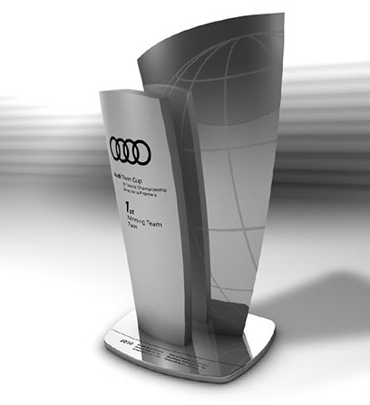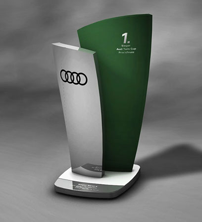 Siegerpokal des internationalen Audi Twin Cup aus Aluminium, Konzept/Design/Produktion