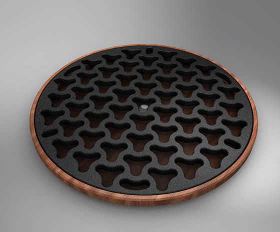 Kreisel aus massivem Aluminium und Harthölzern, Kundenpräsent