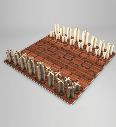 Schachspiel aus Filz mit Holz/Alu Spielbrett für www.soulproducts.de