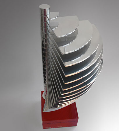 Pokal für Händlerauszeichnung aus massivem Acryl und 3D gedrucktem Aluminium, Konzept/Design/Produktion