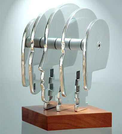 Kreisel aus Aluminium und Harthölzern, Kundenpräsent