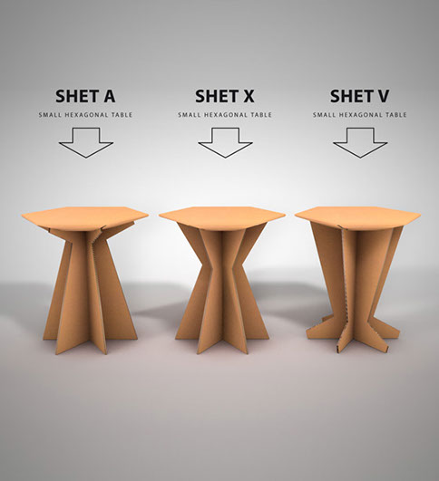 Beistelltische aus Verpackungskartonagen
