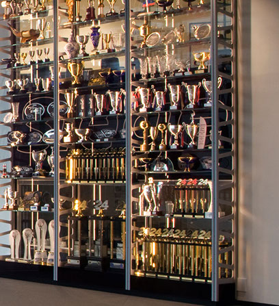 Glasvitrine für Motorsport-Siegerpokale von Audi Sport in Neuburg