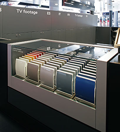 Materialmusterprästentation auf Messen für Audi exclusive und Audi Sport, Konzept, Gestaltung und Produktion