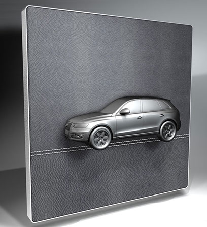 Materialmusterpräsentation für Leder und Lackfarben des Audi Q5, Konzept, 3D-Visualisierung