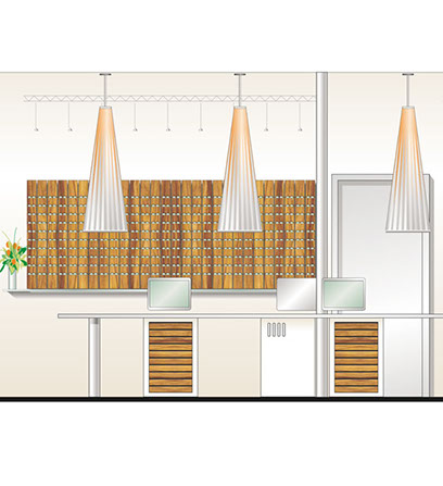 3D Visualisierung, Konstruktion und Realisierung von Regalen, Tisch und Theke, Grafikproduktion, Montage