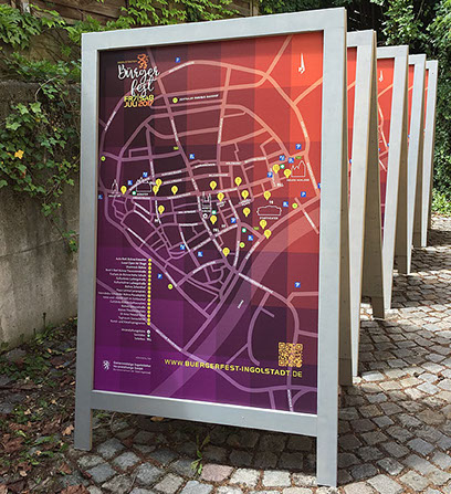 Konstruktion und Produktion von Straßenaufstellern für Großplakate Bürgerfest Ingolstadt