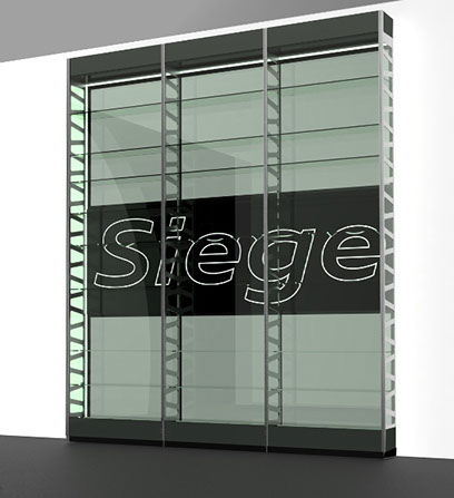 Glasvitrine für Motorsport-Siegerpokale von Audi Sport in Neuburg, Rendering