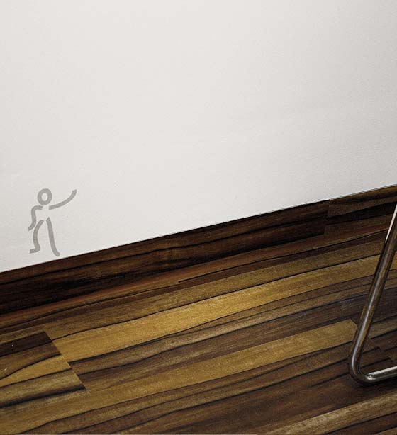 Um allen Besuchern – Kindern, Jugendlichen und Erwachsenen – gerecht zu werden, wurde die Praxis farblich reduziert und konsequent in Weiß, Grau und Orange als freundliche Akzentfarbe gestaltet. Für die kleinen Patienten sind überall in der Praxis kleine Strichmännchen unterwegs. Sie hängen an Leuchten, sitzen auf Schaltern, balancieren auf Fussbodenleisten oder halten die Beschriftungen der Räume an den Türen fest. Spielzeug sind neben Büchern, Bauklötze aus ungefärbtem Naturholz und Legosteine in den Farben Weiß, Grau und Orange.