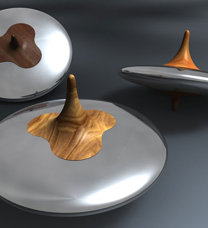 Kreisel aus Aluminium und Harthölzern, Kundenpräsent